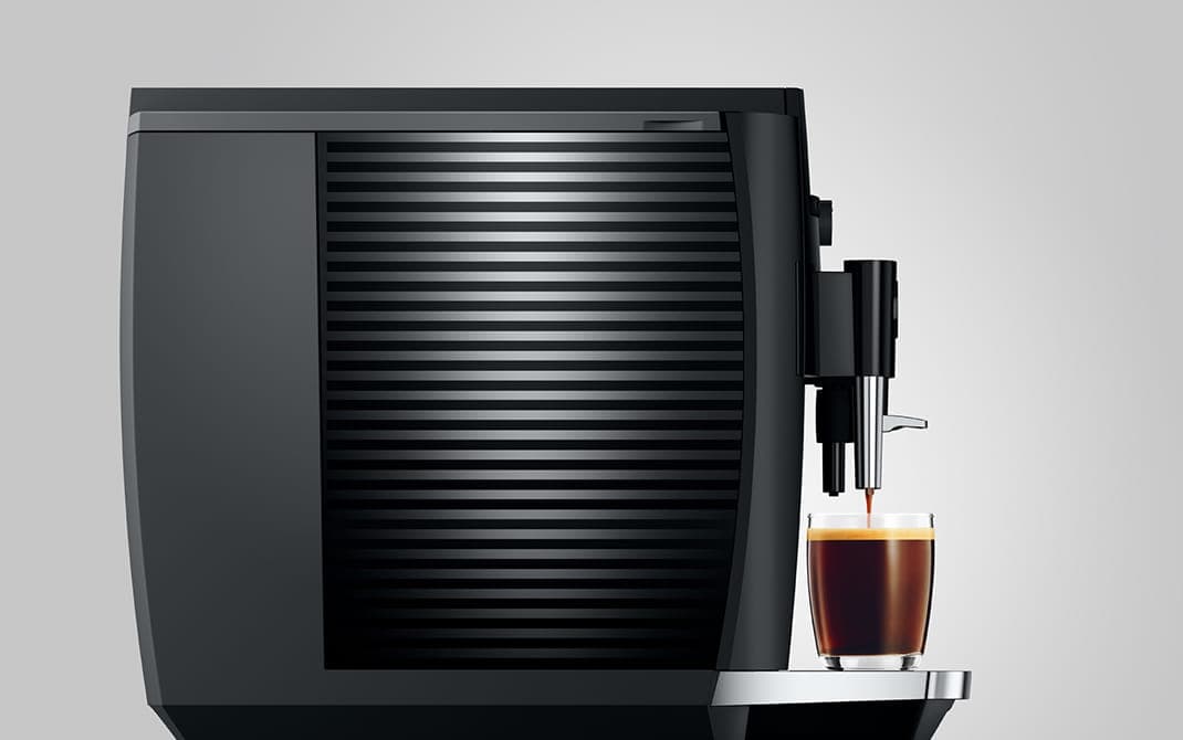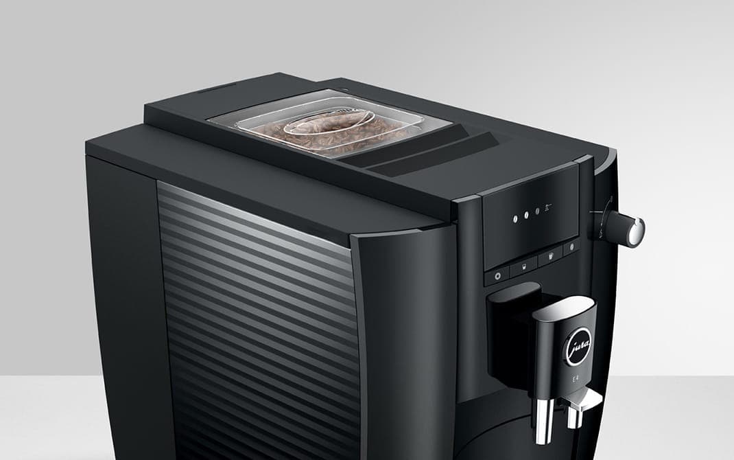 Die E4 präsentiert sich im charakteristischen Design der JURA-Vollautomaten. Es ist geprägt von straffen Flächen und klaren Linien. In höchster Präzision verarbeitet, unterstreicht die reduzierte Formensprache die Premium-Qualität dieses Vollautomaten. Purismus findet auch in der Farbwahl Ausdruck. Während der gesamte Körper in zurückhaltendem Piano Black gehalten ist, setzen verchromte Highlights Akzente und inszenieren das perfekte Kaffeeresultat.