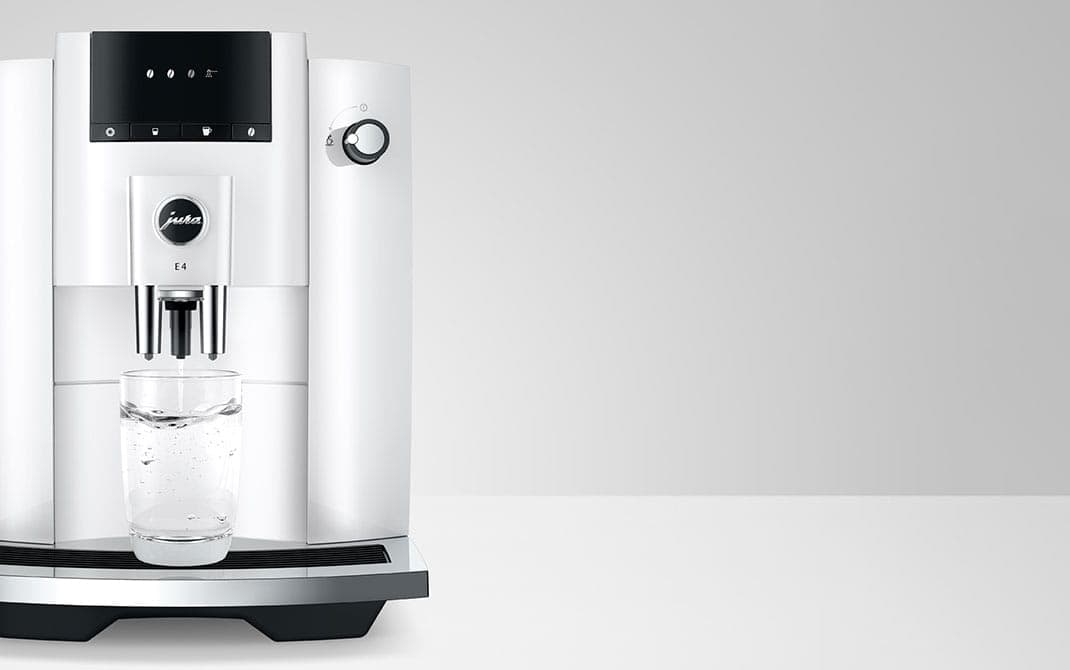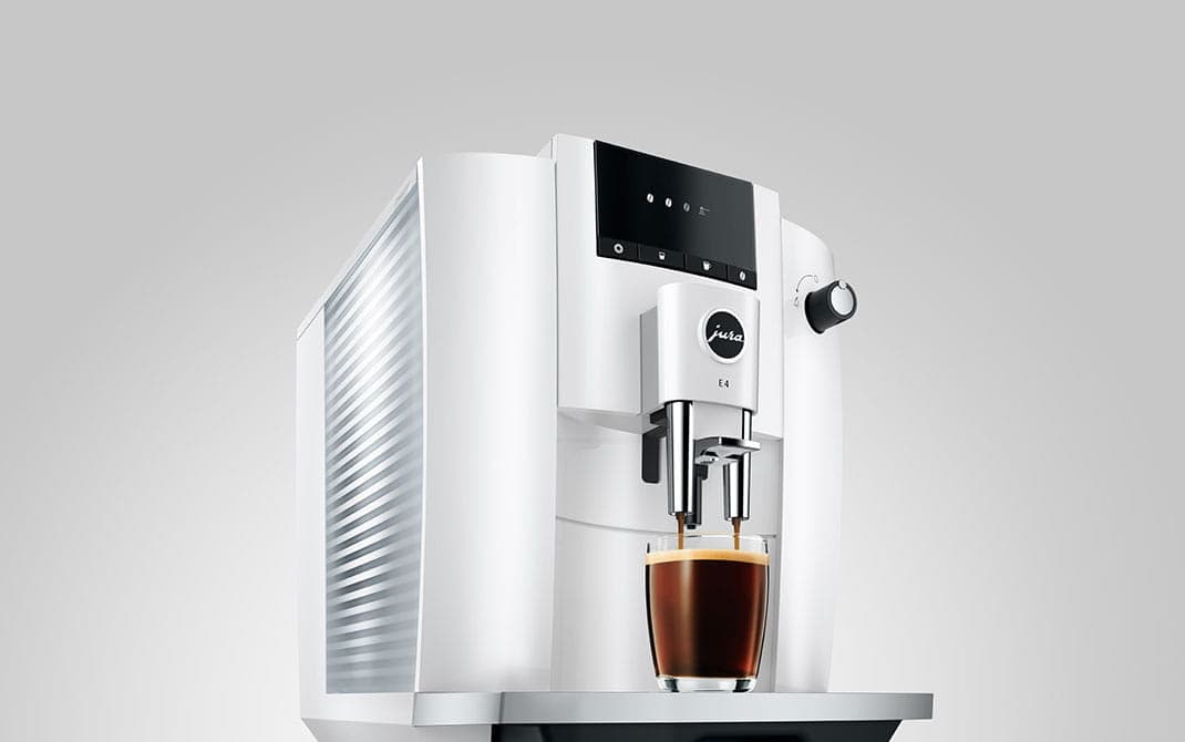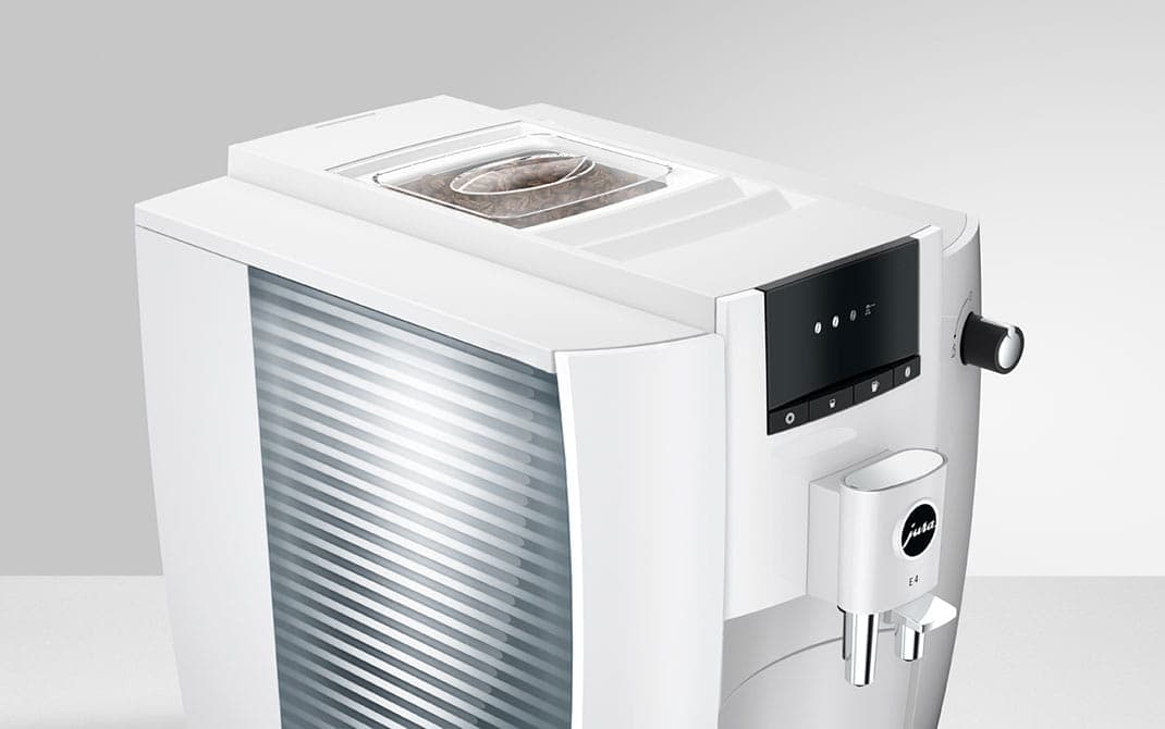 Die E4 präsentiert sich im charakteristischen Design der JURA-Vollautomaten. Es ist geprägt von straffen Flächen und klaren Linien. In höchster Präzision verarbeitet, unterstreicht die reduzierte Formensprache die Premium-Qualität dieses Vollautomaten. Purismus findet auch in der Farbwahl Ausdruck. Während der gesamte Körper in zurückhaltendem Piano White gehalten ist, setzen verchromte Highlights Akzente und inszenieren das perfekte Kaffeeresultat.