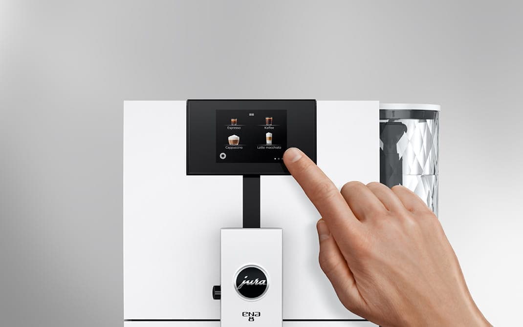 Mit dem übersichtlichen TFT-Touchscreen und der intuitiven, stringenten Benutzerführung haben Sie mit einem einzigen Fingertippen 15 Spezialitäten zur Auswahl. Ebenso unkompliziert lässt sich die Milchsystem-Reinigung auf Knopfdruck starten und sorgt jederzeit für TÜV-zertifizierte Hygiene. Oder bedienen Sie Ihren Kaffeevollautomaten ganz einfach über Ihr Smartphone: Selbstverständlich ist die ENA 8 dank WiFi-Technologie auch mit J.O.E.® kompatibel.