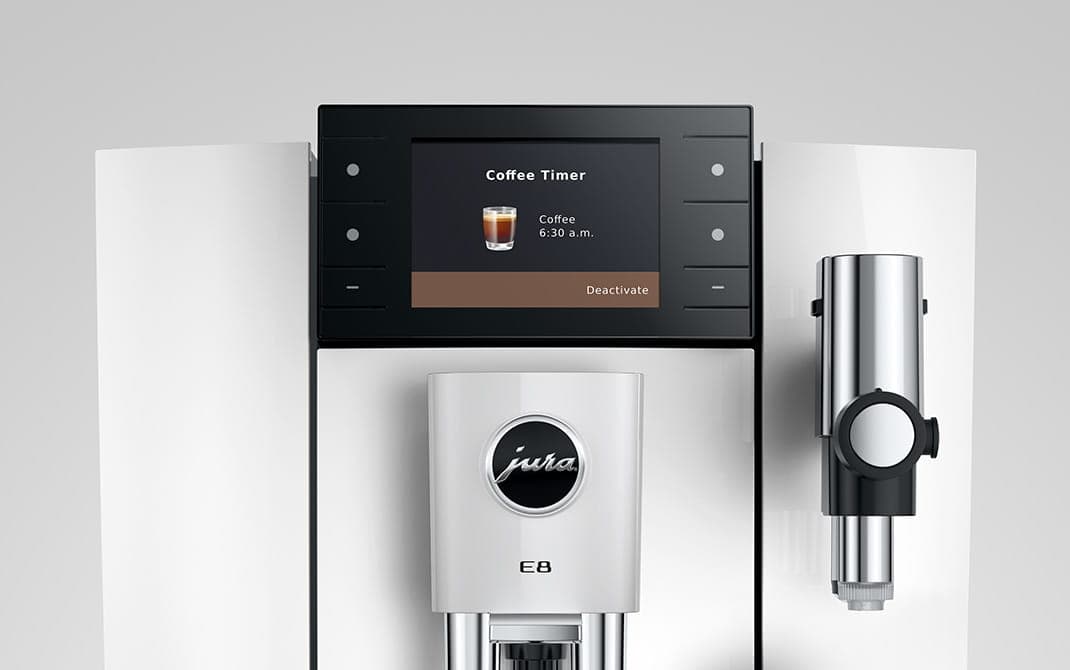 Die E8 bietet mehr Komfort als je zuvor: Dank Coffee Timer und J.O.E.® steht der Morgenkaffee direkt nach dem Aufstehen bereit und lädt zum Start in den Tag ein. Der Quality Assistant gestaltet die Pflege der E8 ressourcenschonender und garantiert maximale Hygiene für maximalen Genuss. Über das 3,5-Zoll-Farbdisplay mit seitlichen Tasten navigieren Kaffeeenthusiasten bequem durch die Genusswelten, in denen unterschiedliche Farben den Überblick erleichtern.
