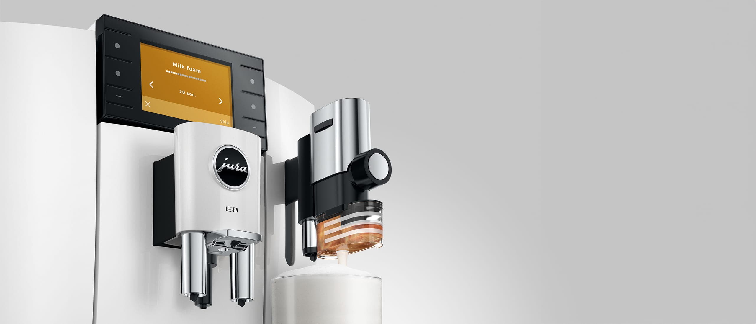 Das erfolgreichste Vollautomaten-Modell von JURA präsentiert sich in fünfter Generation mit zukunftsweisendem Komfort und beeindruckenden drei Genusswelten. Klassisch Hot Brew, Light Brew und Sweet Foam schaffen die unvergleichlichen Kaffeemomente, die mit der E8 erlebbar sind.