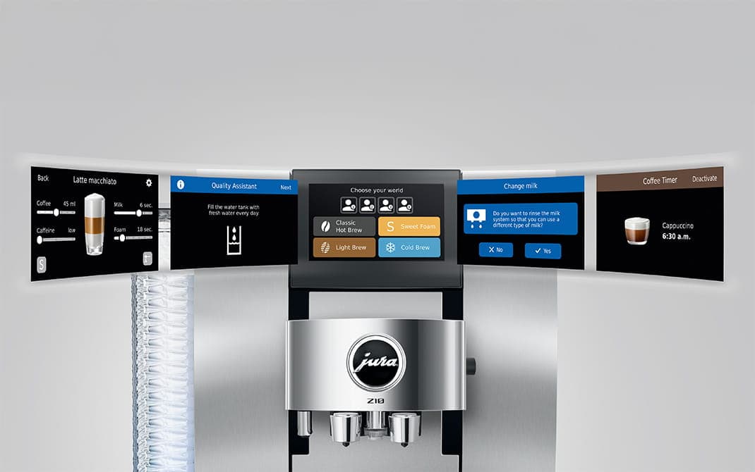 Frisch gebrühter Kaffee steht zum Genießen bereit und herrlicher Kaffeeduft erfüllt den Morgen: Ein Komfort, den der Coffee Timer erfüllt. Eingestellt über die App J.O.E.®, sorgt der Coffee Timer dafür, dass die gewünschte Kaffeespezialität ohne Zutun frisch und pünktlich am Folgetag zubereitet wird. Für den individuellen Kaffeemoment findet sich mit dem Koffeinregler eine weitere zukunftsweisende Technologie. Er ermöglicht es, den Koffeingehalt in drei Stufen zu justieren und bietet dem persönlichen Kaffeegenuss die feine, entscheidende Balance. Benutzerfreundlich präsentieren sich die assistierenden Funktionen: Der Milk Assistant weist auf die Spülung des Milchsystems hin und ermöglicht nach Anwendung eine laktosefreie Zubereitung. Mit dem Quality Assistant gestaltet sich die Pflege des Vollautomaten komfortabler als je zuvor, und die Freude am Genuss sowie die Langlebigkeit bleiben erhalten.