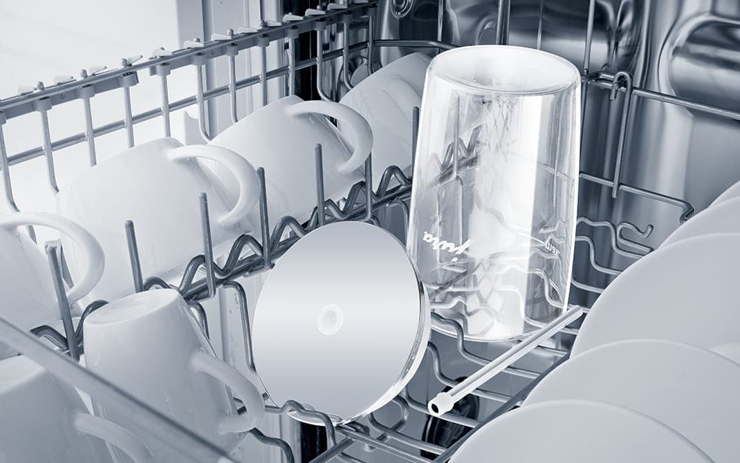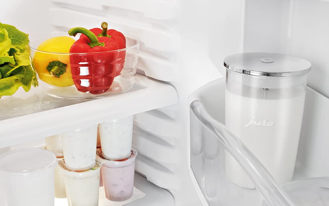 Der Milchschlauch wird an den Deckel angeschlossen und schon kann die Zubereitung gestartet werden. Durch die einfachen Steckverbindungen wird ein rundum sauberer Weg für die Milch gewährleistet. Der oftmals verschmutzte Aussenbereich vom Milchschlauch kommt nie in direkten Kontakt mit Milch.