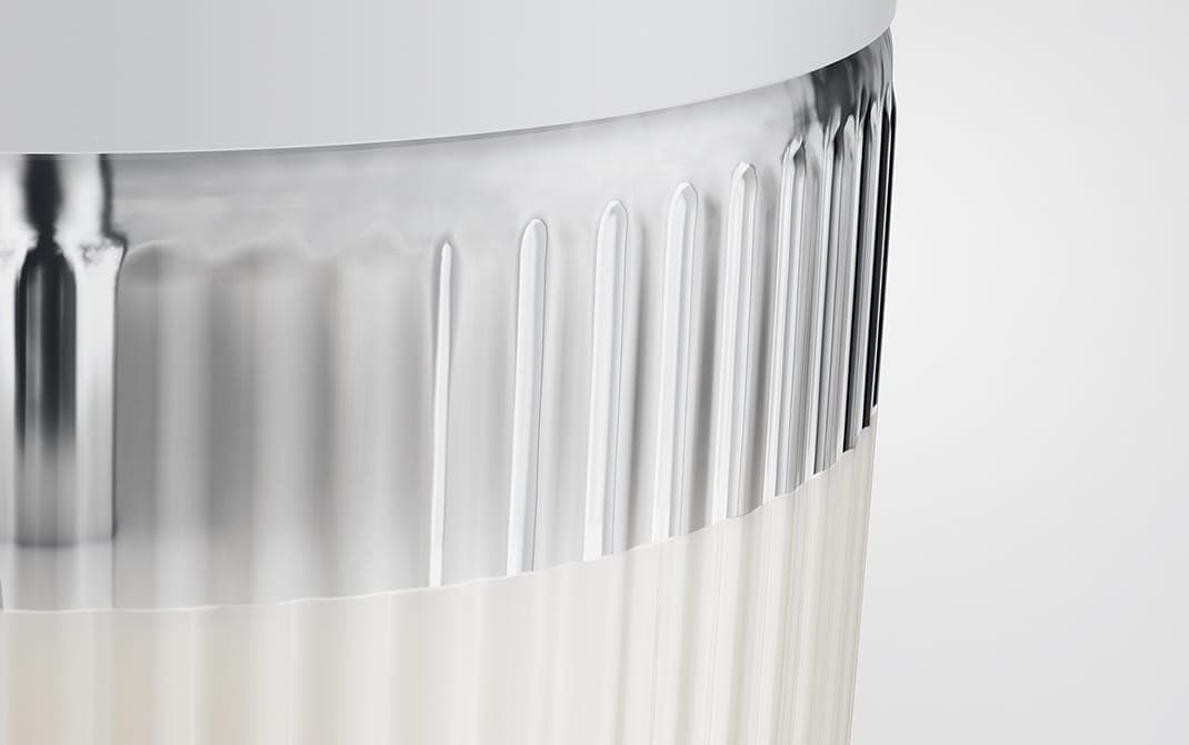 Aus Borosilikatglas gefertigt, hält die Milch-Karaffe Temperaturschwankungen und Kratzern stand. Sie eignet sich für die hygienische Reinigung in der Spülmaschine, schützt die Milch und die Milchalternative vor Gerüchen und behält sie frisch. Dank dickem Boden steht die Karaffe stabil und sicher und wirkt mit ihrer gerillten Oberflächenstruktur besonders elegant.