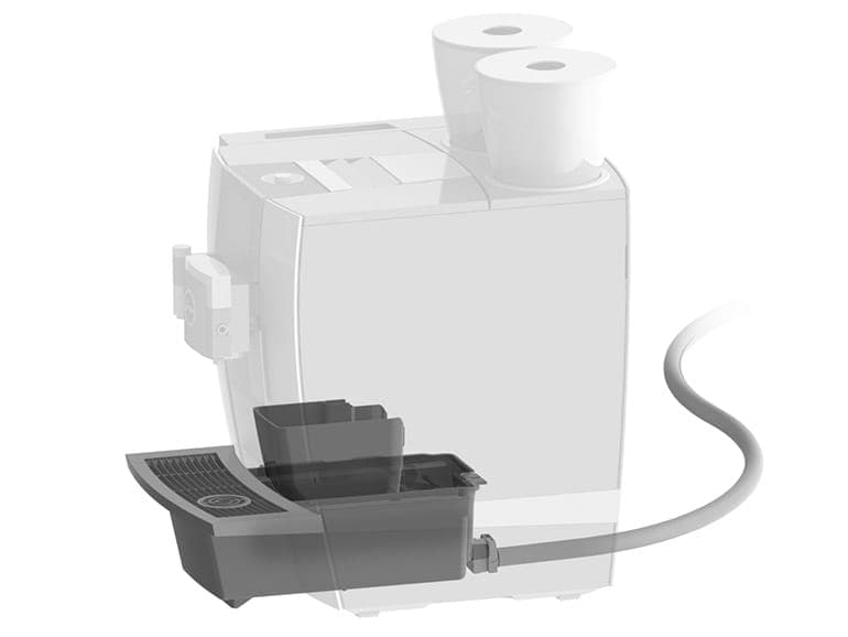 3. Die geschirrspülertaugliche Restwasserschale lässt sich ganz einfach mit nur einer Hand entnehmen und leeren.