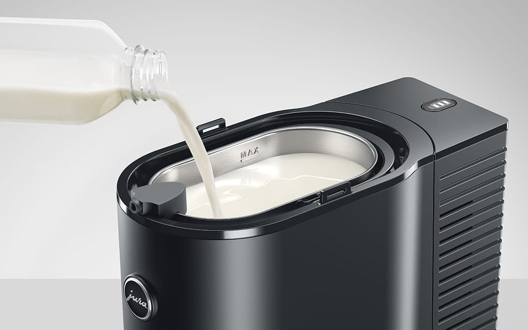 Milch mit einer Idealtemperatur von 4 °C, in Kombination mit optimalen Hygienebedingungen, bildet die Basis für die Zubereitung vielfältiger Rezeptkreationen. Ein schlankes und elegantes Design, robuste Materialien und hochwertige Details aus Edelstahl sowie optimaler Bedienkomfort machen den Cool Control zum perfekten Zubehör jedes Professional-Kaffeevollautomaten. Seine klaren, reduzierten Formen passen hervorragend zum klassischen JURA-Design.