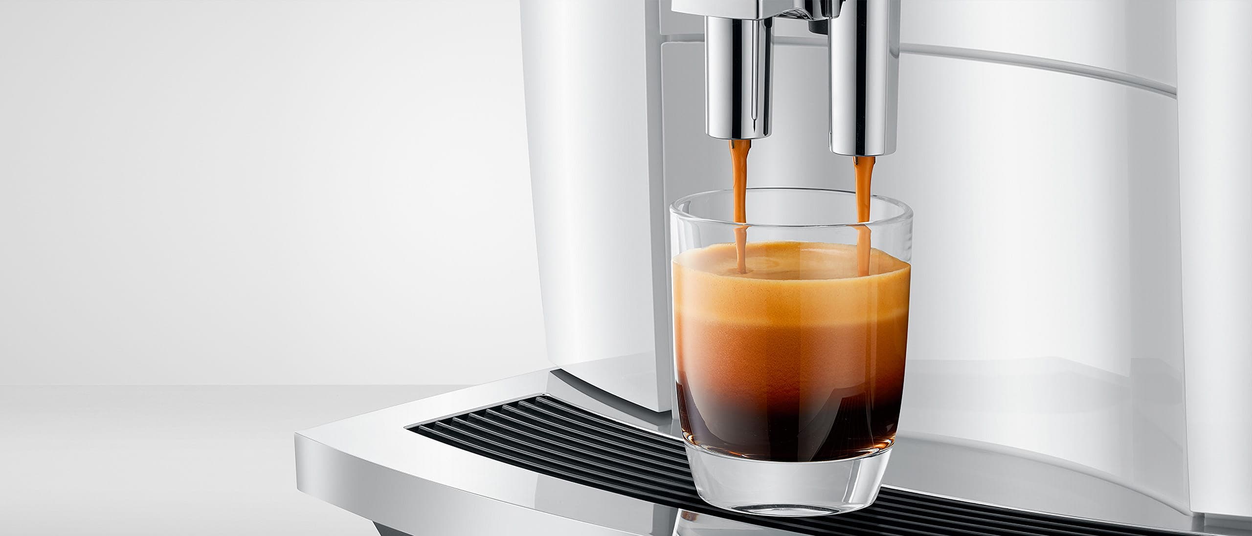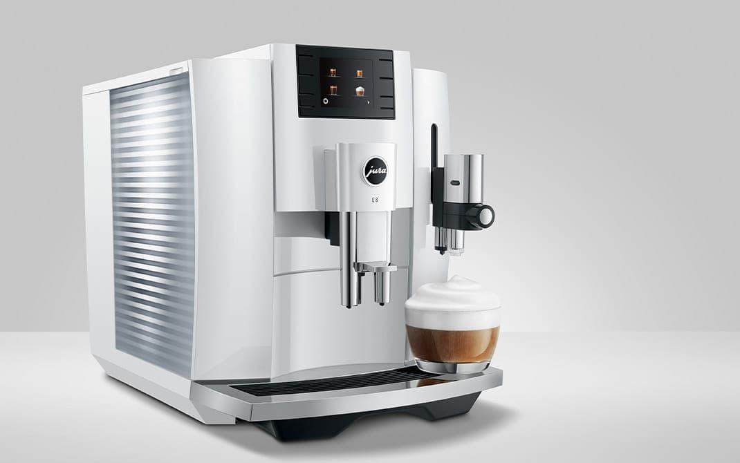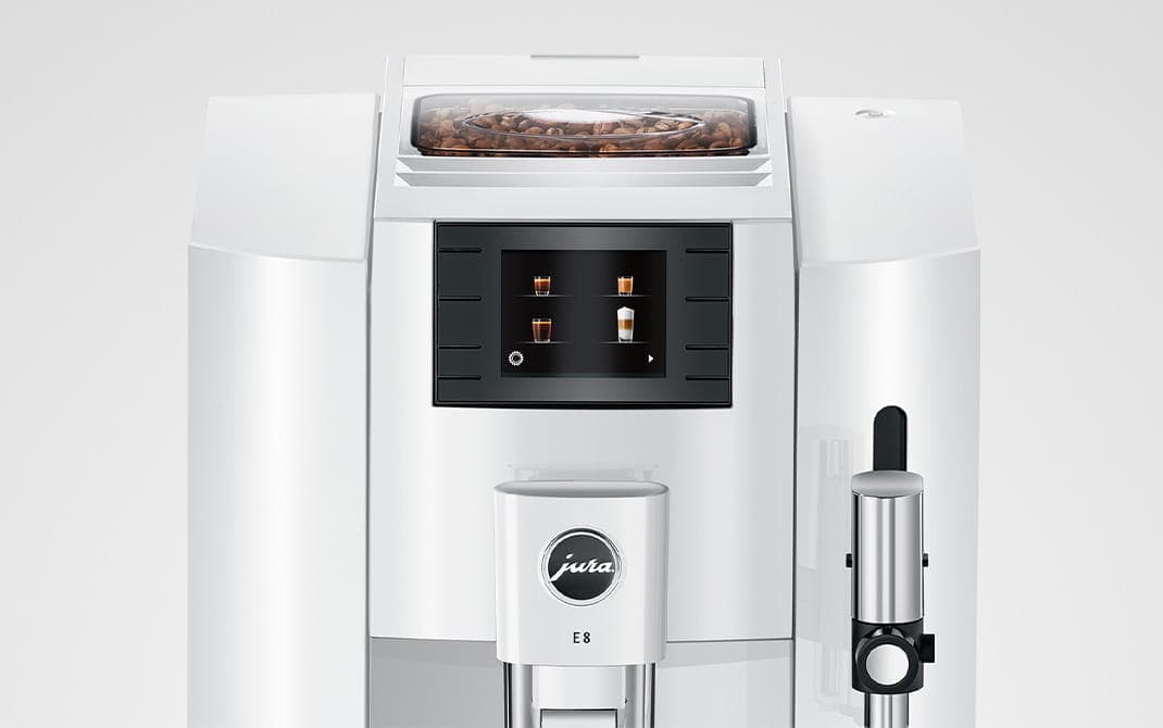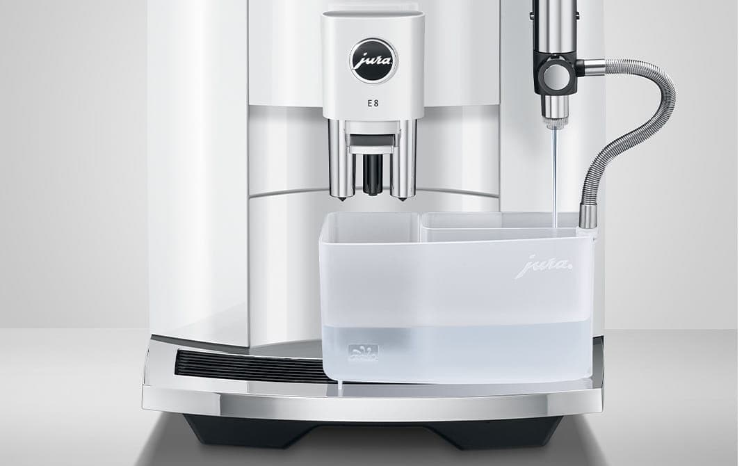 Das charakteristische Design von JURA-Kaffeevollautomaten präsentiert sich klar und ausdrucksstark. Hochwertige Materialien und eine präzise Verarbeitung unterstreichen die Premium-Qualität der modernen E8. Bereits ihre Formgebung steht für Qualität, Funktionalität und Langlebigkeit. Details wie der Wassertank mit Rillen oder die hochwertige, verchromte Tassenplattform vollenden das klare und harmonische Design der E8.